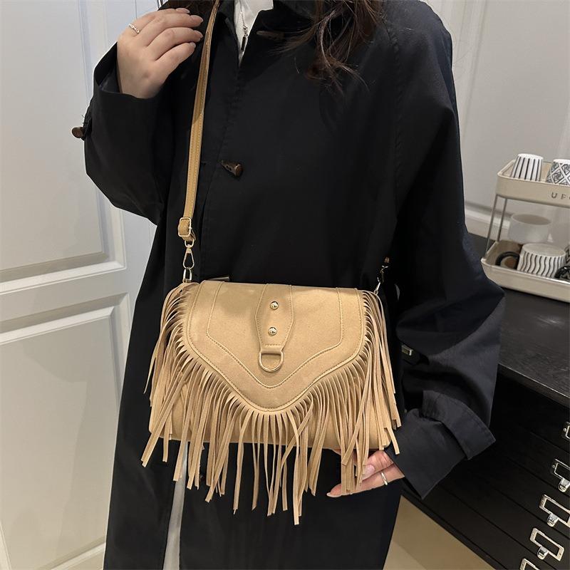 Niche Retro Commuter Locomotive Fringed Bag Women's New Leather Buckle Matte Shoulder Bag Commuter Messenger Bag Tide