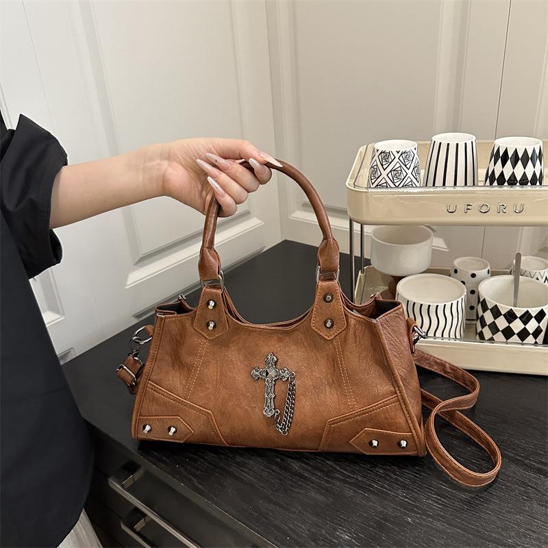 Textured Tote Bag Handbag Locomotive Personalized Cross Chain Shoulder Underarm Bag Large Capacity Messenger Bag