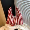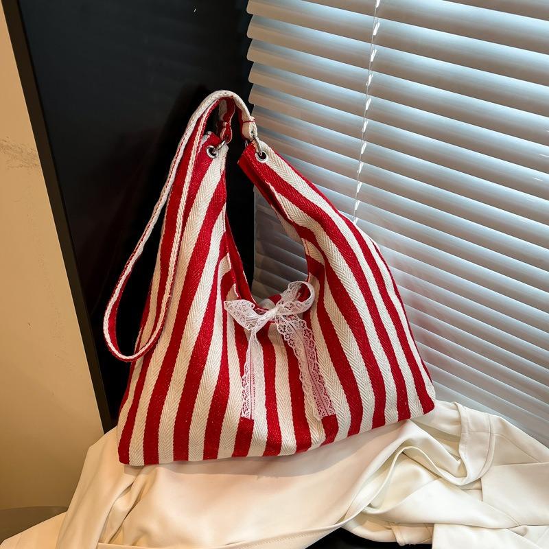 Retro Literary Handbag Women's Small Fresh Striped Shoulder Bag Casual Large Capacity Commuter Canvas Tote Bag
