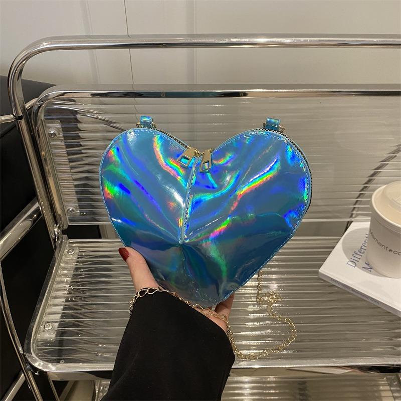 Niche Design Laser Glossy Love Shape Messenger Bag Spring and Summer Popular Chain Shoulder Bag Women