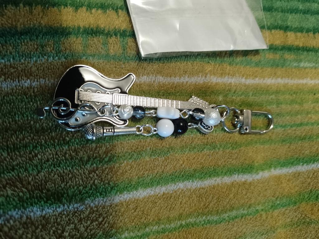Cute Guitar Microphone Bead Mobile Phone Chain Charm Sweet Keychain Backpack Musical Note Pendant Bag Hanging Ornament Girl Gift