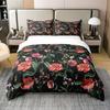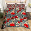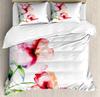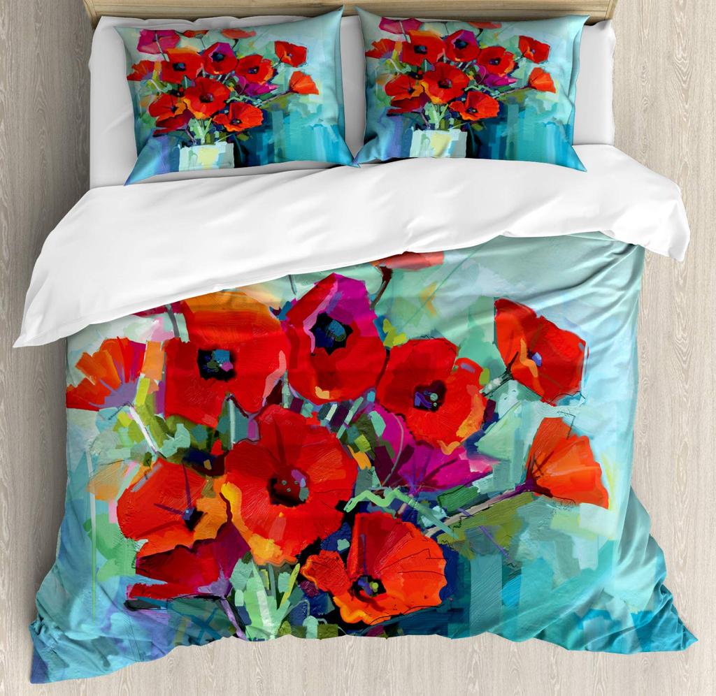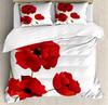 Flower Duvet Cover Set, Little Red Spring Summer Time Garden Florals Poppy Decorative 3 Piece Bedding Set with 2 Pillow Shams
