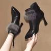 Xiaoxiangfeng High-heeled Short Boots Women's 2025 Autumn and Winter New Pointed-toed Temperament Mink Hair Fine-heeled Wine Glass and Fashion Bo