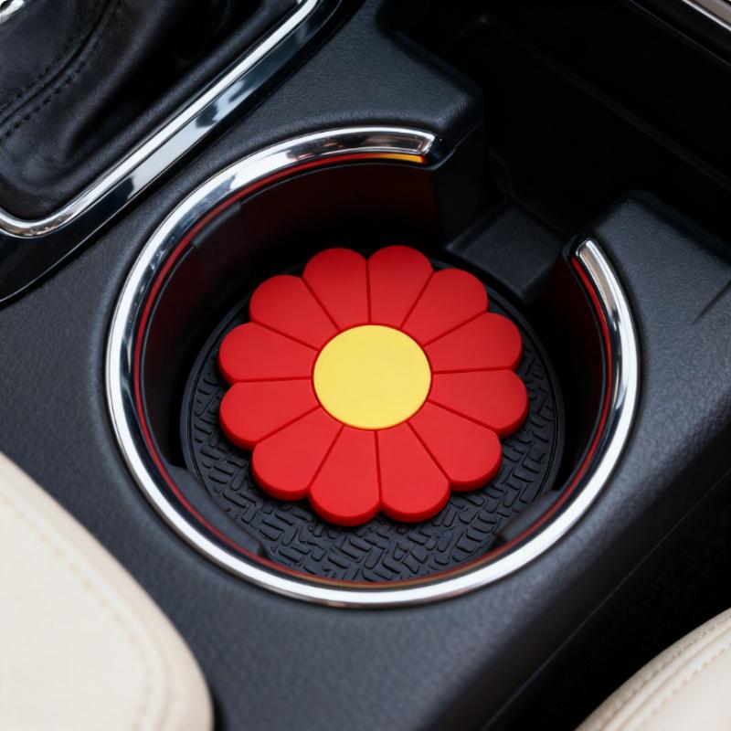 2pcs Car Anti-Skid Coaster Flower Car Coaster Anti-Skid High-Temperature Resistant Multi-color Optional Colorful Protective Pad