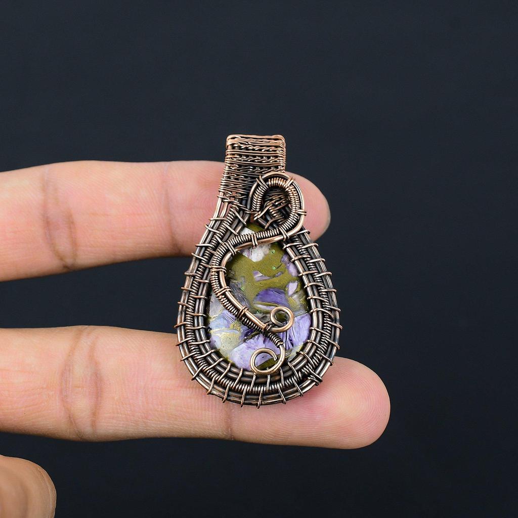 Copper Charoite Pendant Gemstone Jewelry, 999 Copper Wire Wrapped Pendant, Handmade Gift For Wife Pendant Jewelry