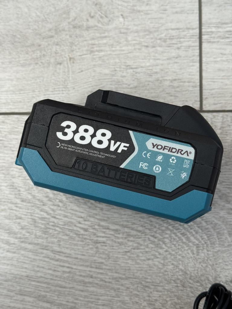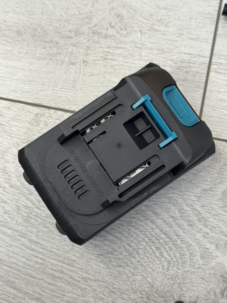 High-Capacity Battery--Rubber-coated blue battery pack with LED indicator. Built with 10 cells (1500mAh each), providing a total of 15000mAh for long-lasting performance.