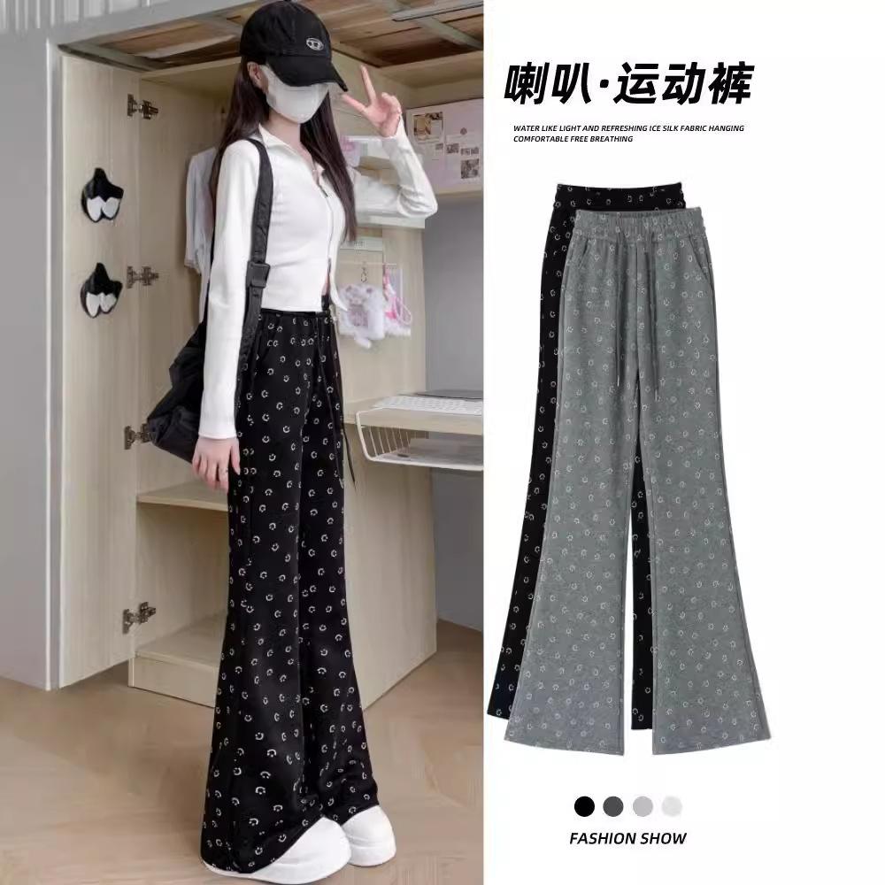 Black Spice Girl Micro Flared Pants Sweatpants Autumn and Winter Skinny Mopping Casual High Waist Wide Legs Smiley Horseshoe Sweatpants