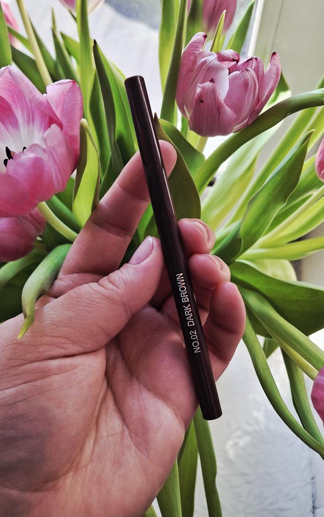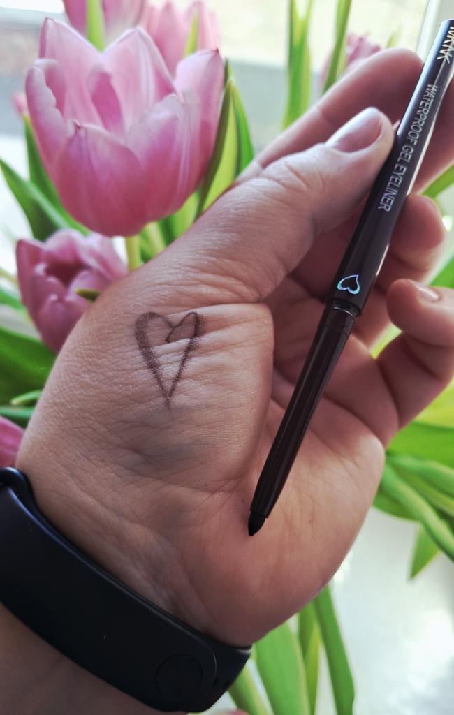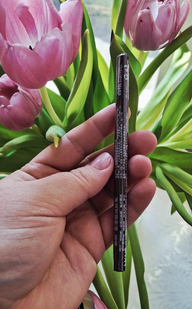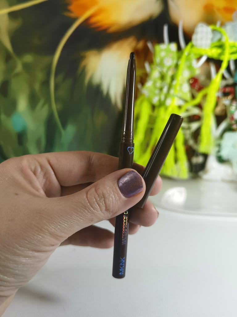 Retractable eyeliner Brown color Writes brightly, but not thinly Not resistant Washes off with water