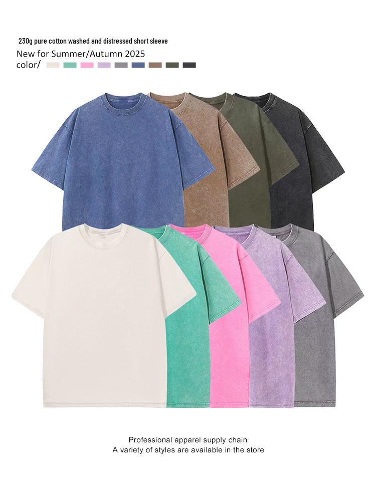 Discover a stylish and comfortable addition to your wardrobe with this solid-patterned, trendy American-style T-shirt. Crafted from high-quality cotton, it offers a soft and durable wear suited for any casual occasion. The round neckline and short sleeves provide a classic look, while the washed drop shoulder design adds a touch of retro charm. Weighing 230g, this T-shirt balances durability with a relaxed fit, making it a versatile option for everyday wear.