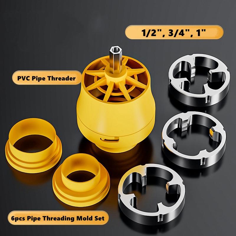 1/2", 3/4", 1" PVC Pipe Threader Kit, Electric Drill Compatible Pipe Threader Kit with Various Die Sizes