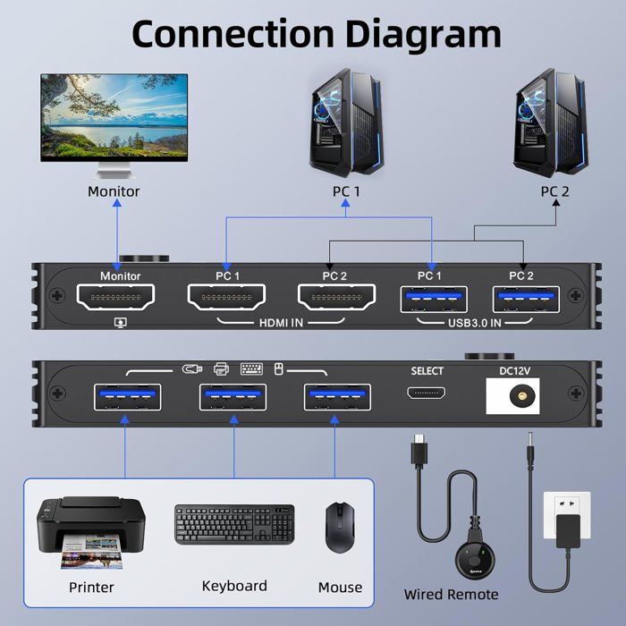 HDMI KVM Switch - UNDERSCORE - 8K 60Hz - 2 PC - 1 Monitor - USB 3.0