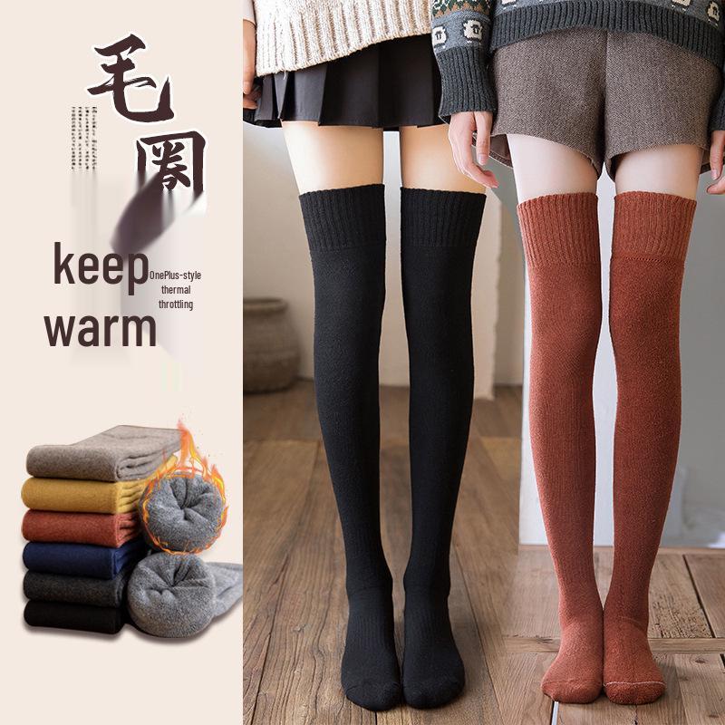 Korean Style Women's Fleece-Lined Over-the-Knee Socks - Thick, Warm Terry for Autumn/Winter