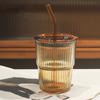 1PCS 400ml Striped Glass Cup with Transparent Lid Straw Iced Coffee Cup Tea Cup Milk Water Cup Beverage Cup Juice Cup