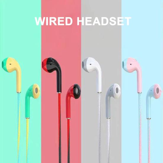 Wired Earbuds Stereo Effect with Microphone HiFi Sound Flat Ear Anti-interference Music Player Macaroon Color 3.5mm In-ear Headphone Phone Accessory