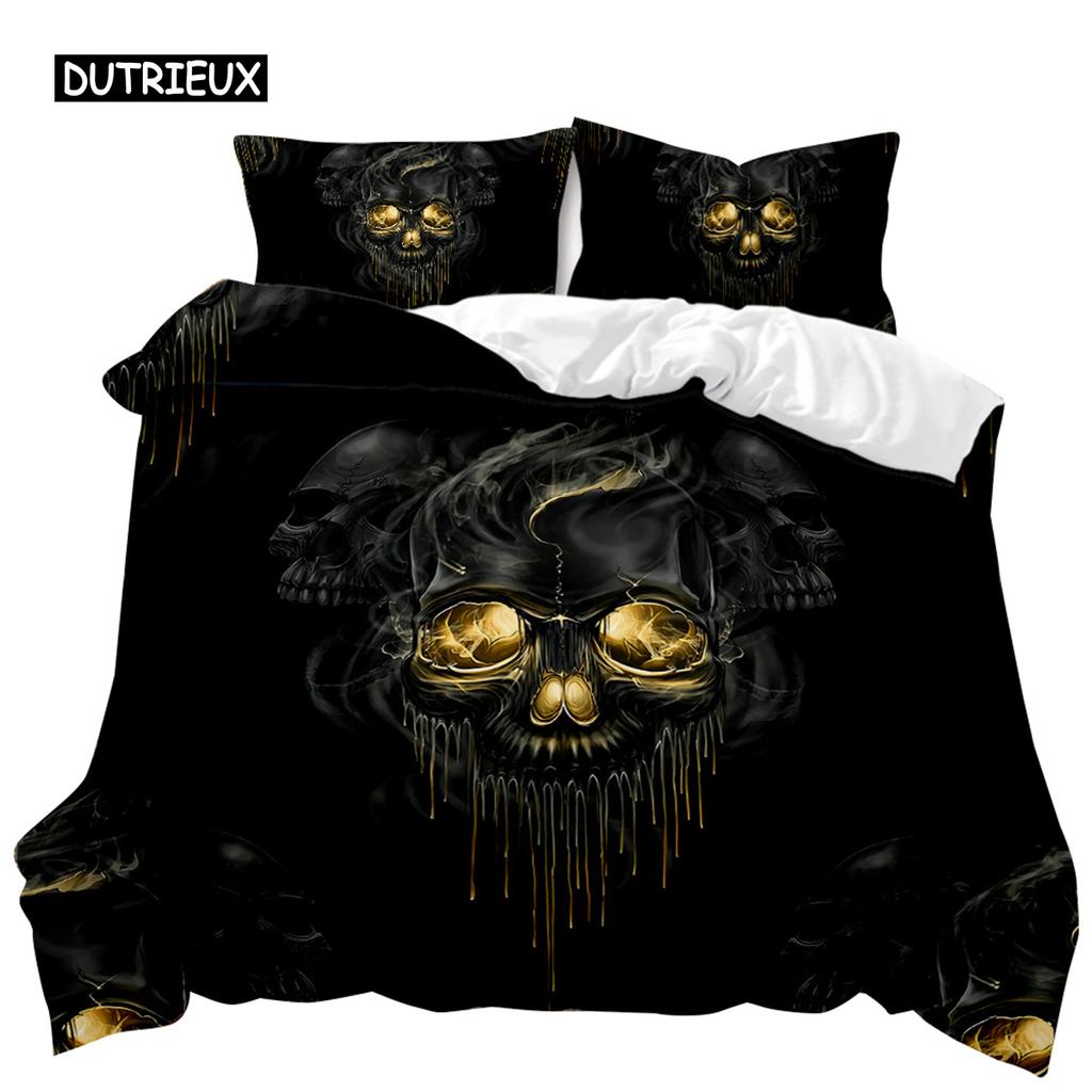 Skull Duvet Cover Set Horrible Skeleton Bedding Set Bedclothes Halloween Gothic Horror Polyester Quilt Cover Double Queen King