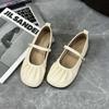 French Silver Evening Mary Jane Women's Shoes 2025 Spring and Autumn New Flat-bottomed Pleated Ballet Grandma Shoes Single Shoes