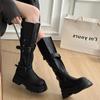 Designer Women Knee High Chelsea Boots Chunky Platform Goth Fad Heeled Shoes 2025 Winter New Casual Woman Mid Heels Long