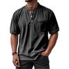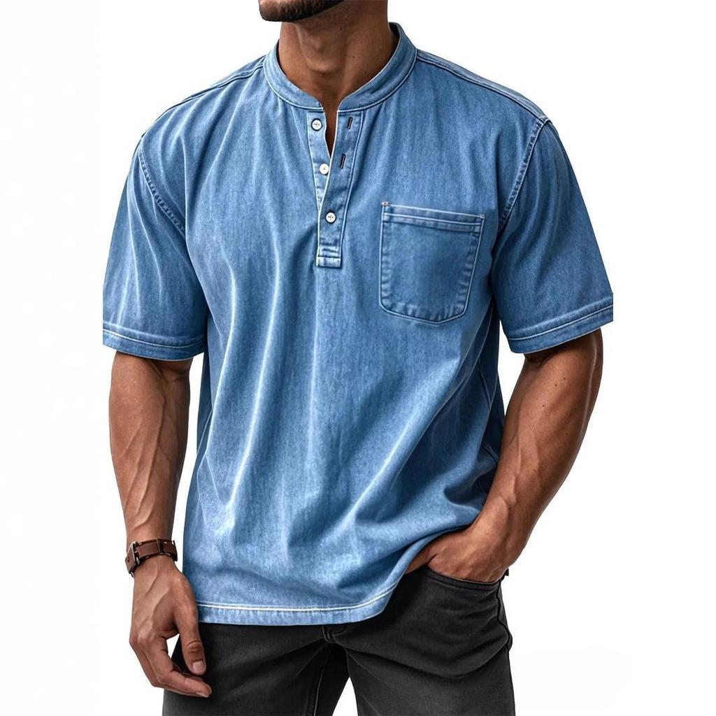 Casual short sleeve Henley shirt in light blue denim-style fabric