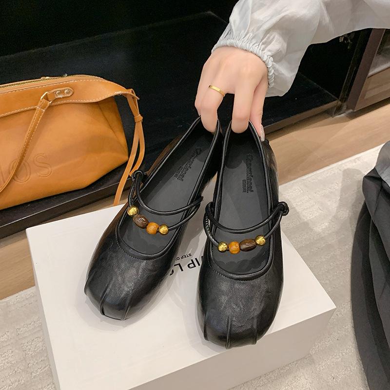 French Retro Light Mouth Beaded Mary Jane Single Shoes Women's 2025 New Comfortable and Lightweight One-pedal Ballet Shoes