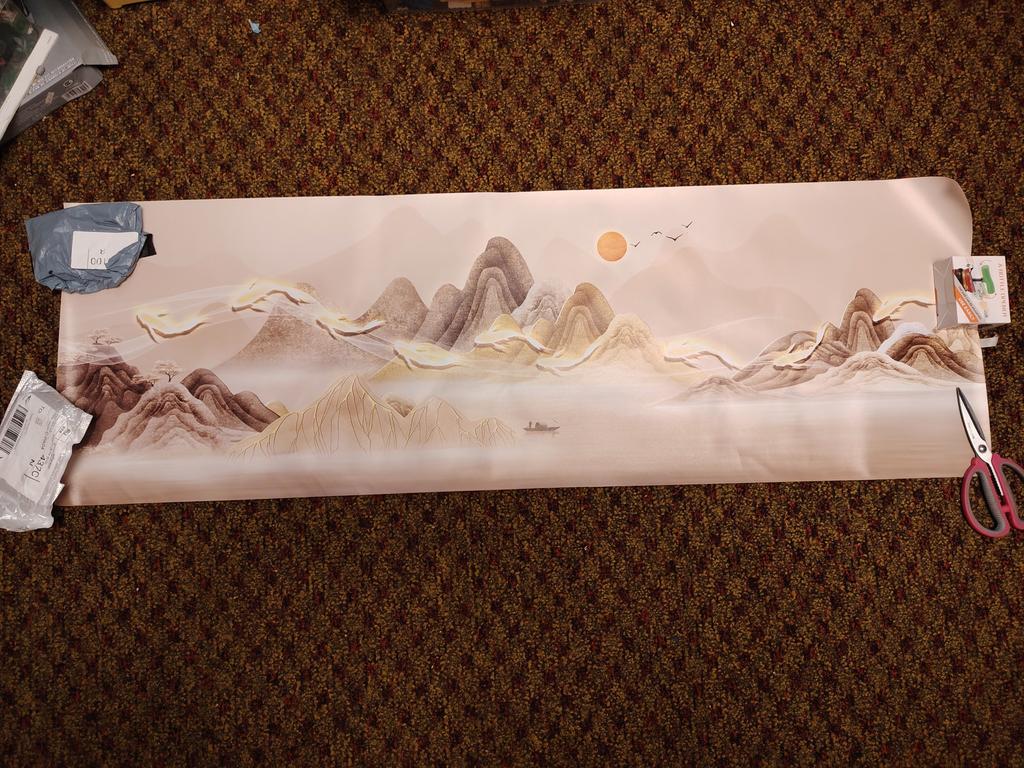 Chinese Style Fengshui Mountains and Flowing Water Landscape Canvas Painting Nine Koi Posters and Prints Living Room Wall Decor
