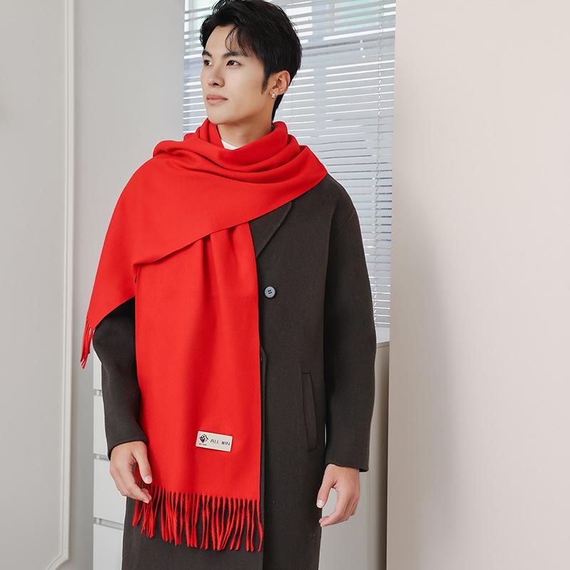 Chinese Red Scarf Shawl High End Men's Cashmere Wool Scarf Women's Versatile Red Scarf In Autumn and Winter