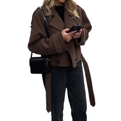 Elegant and Unique Loose Jacket Coat with Turn-down Collar Design, Double-breasted, Suitable for Autumn/Winter Season, Comes with Belt