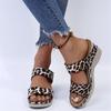 Women Lace-up Closed Toe Comfortable Slip On Leopard Snake Print Wedge Slippers