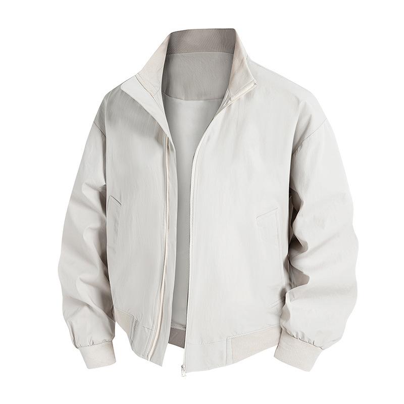 Versatile Coat Minimalist Jacket Men's Loose Spring and Autumn Solid Color Stand-up Collar Casual Men's Jacket Men Breathable Work Casual Jacket