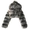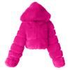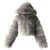Women Short Faux Hooded Warm Furry Splicing Jacket Long Sleeve Outerwear
