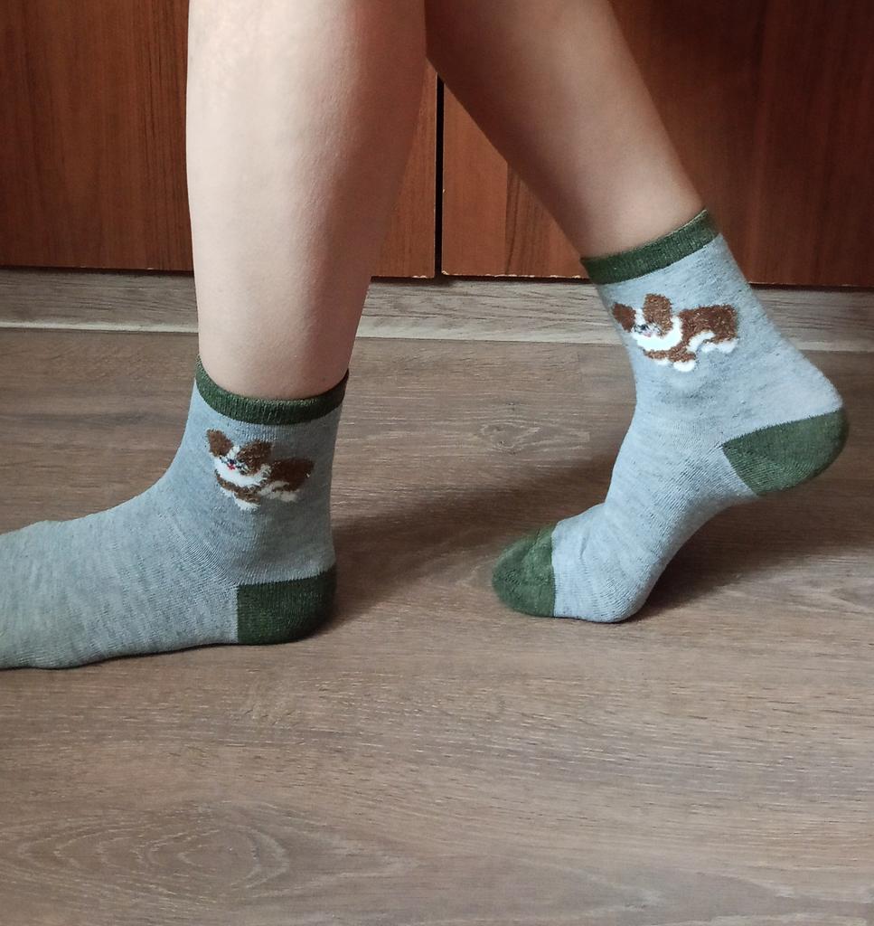 Very cute socks, soft, comfortable, and fluffy doggies. 👍🧦