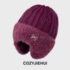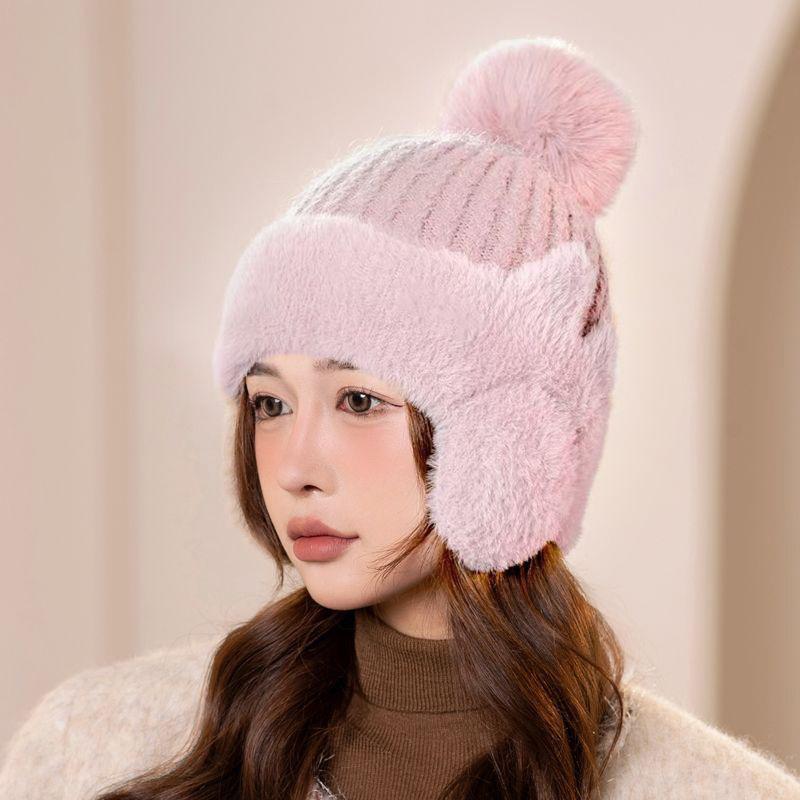 New Winter Knitted Hat Women's Fleece Thickened Autumn and Winter Wool Hat Mother Warm Ear Protection Hat Riding Windproof