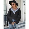 A Loose and Casual Women's Top with Sequined Embroidery, Lace Collar and V-neck Pullover