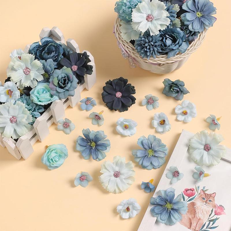 25Pcs 4cm Artificial Flower Blue Artificial Dahlia Rose Flower for Wedding Bridal Party Baby Shower Graduation Season Home Decor