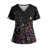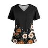 Plus SizePrinted Scrub Working Uniform Tops For Women's Cross V-Neck Halloween Print Short Sleeve Fun T-Shirts Workwear Tee With Pockets