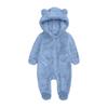 Baby Plush Warm One-Piece Bear Hooded Zipper Children's Solid Color Sleepsuit