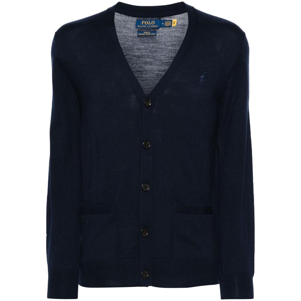 Polo Ralph Lauren Solid Slim Fit V-Neck Single-Breasted Long Sleeve Knit Sweater Men Sweater Navy-Blue 710946144001
