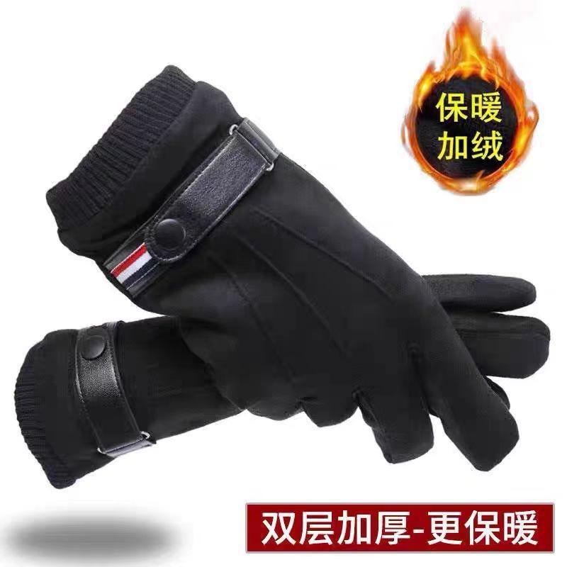 Suede Gloves Men's Autumn and Winter Warm Fleece Thickened Finger Gloves Cycling Gloves