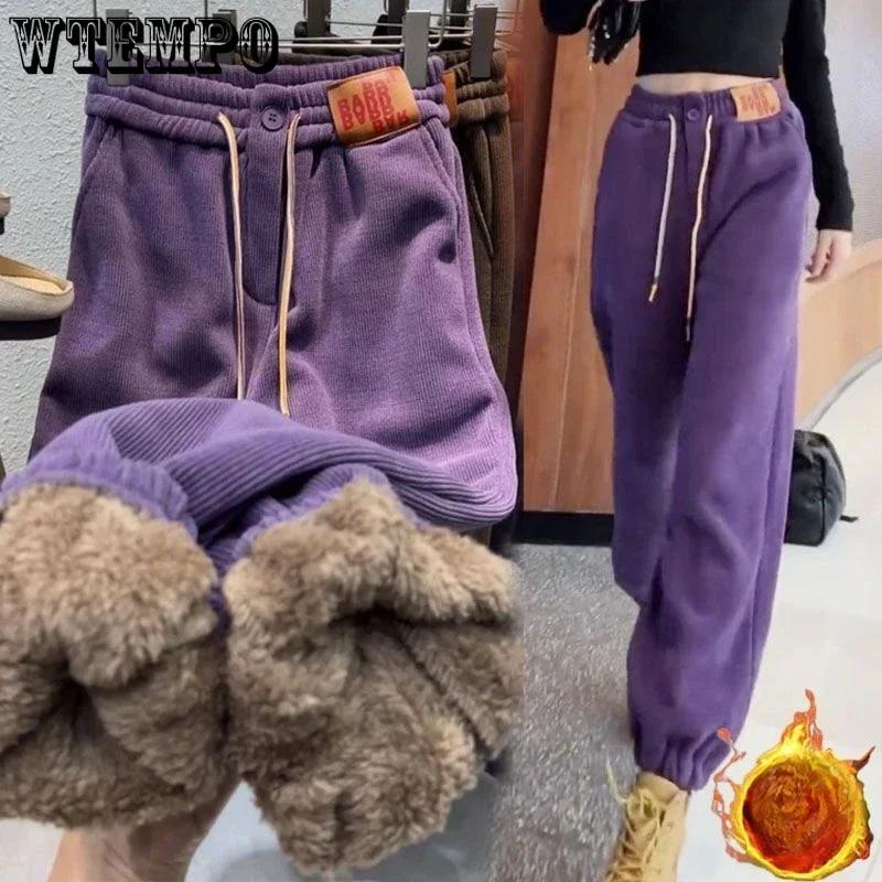 WTEMPO Plus Size Womens's High Waist Drawstring Fleece Sweatpants Tapered Trousers Warm Winter Long Pants for Women with Pockets