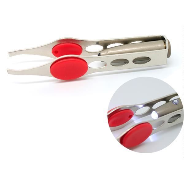 Beauty Tools - LED Eyebrow Clip Tweezers - Metal - 9.5x1.55cm - LR41 Battery Powered