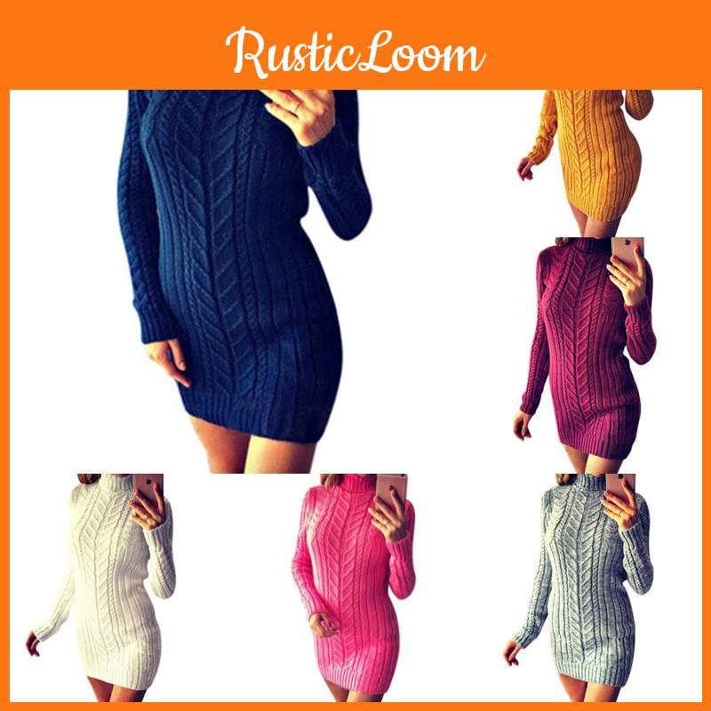 Winter And Autumn Fashion Long Sleeve High Collar Twist Slim Sweater Dress