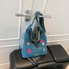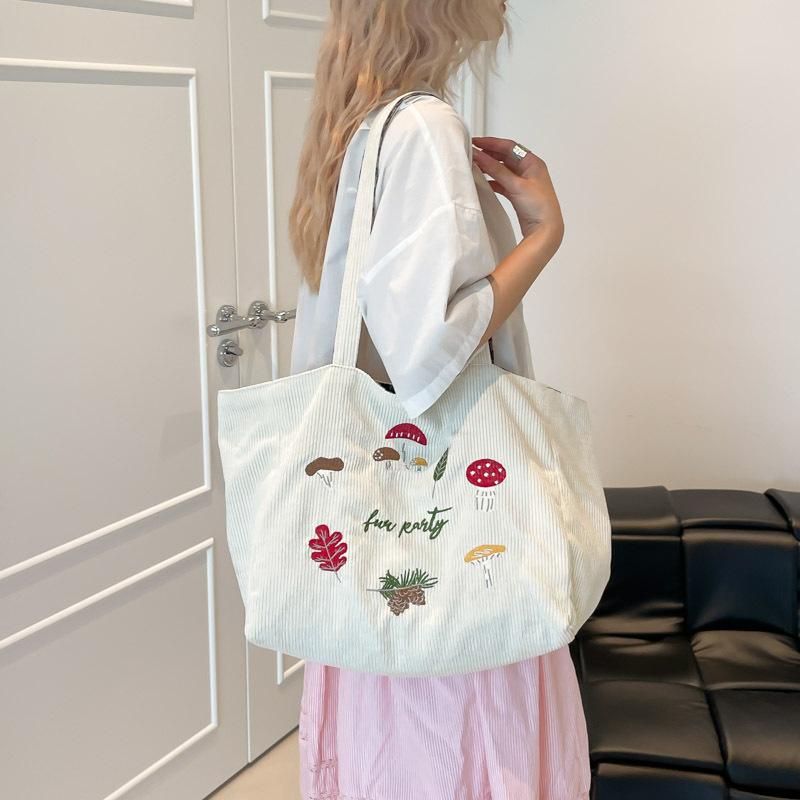 Mori Mushroom Embroidered Shoulder Messenger Bag Corduroy Plaid Double-sided Bag Autumn and Winter New Retro Student Class Bag