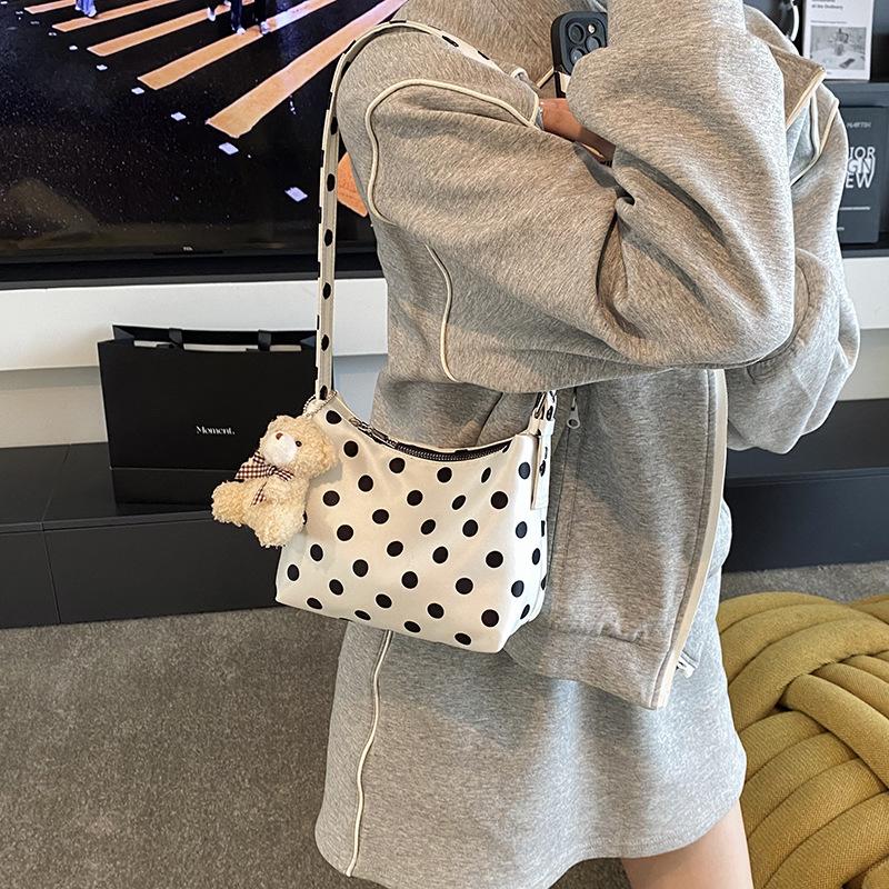 Niche Design Polka Dot Canvas Bag Women's 2025 New Summer Shoulder Bag Popular Super Fire Leisure Bucket Bag
