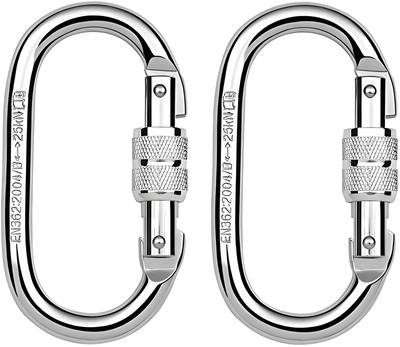 Mu Mianhua 25KN Silver Hard Steel Climbing Carabiner with Screw Clasp 4 Sets56