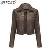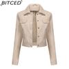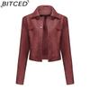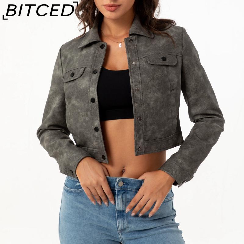 BITCED Spring/Autumn Lightweight Leather Jacket for Women Multi-Pocket Cardigan Style Casual Jacket Fashionable Trendy Everyday Outerwear