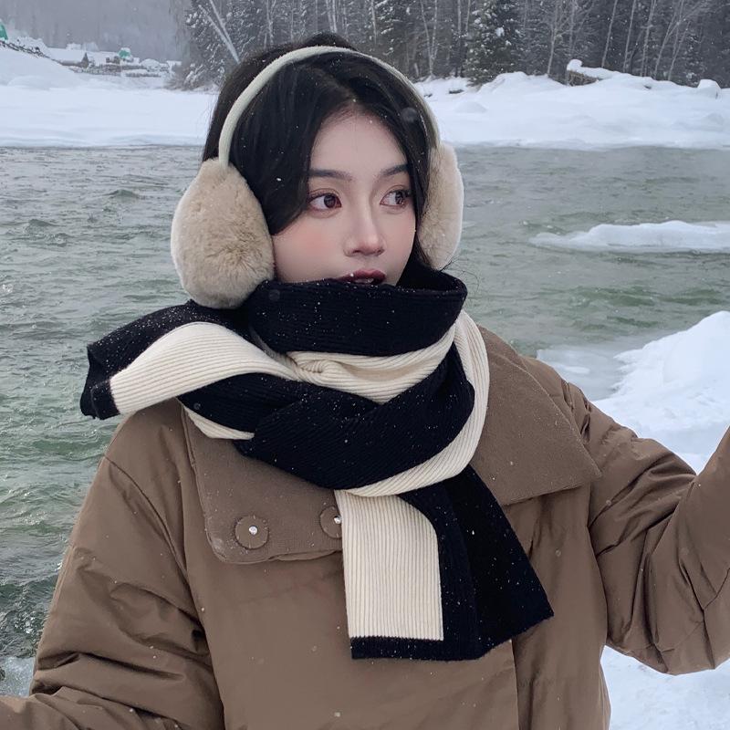 Fashionable Color Blocked Versatile Scarf for Women Winter Warm Long Scarf for Couples Korean Style New Style