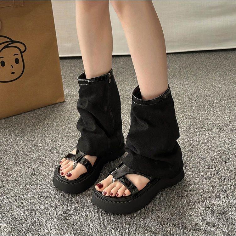 Niche Thick-soled Heightening Niche Roman Shoes 2025 Summer New Sandals Women's Toes Retro Cool Boots Short Boots Pant Boots