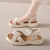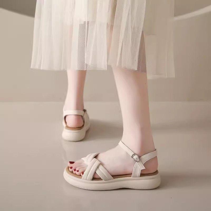 One-word Buckle Flat-soled Soft-soled Beach Shoes 2025 Summer New Cross-strap Internet Celebrity Student Sandals Women's Roman Shoes