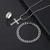 3Pcs Set Men'S Stainless Steel Metal Cross Pendant Chain Necklace Bracelet Ring Jewelry Set Male Hip Hop Daily Wear Accessories