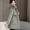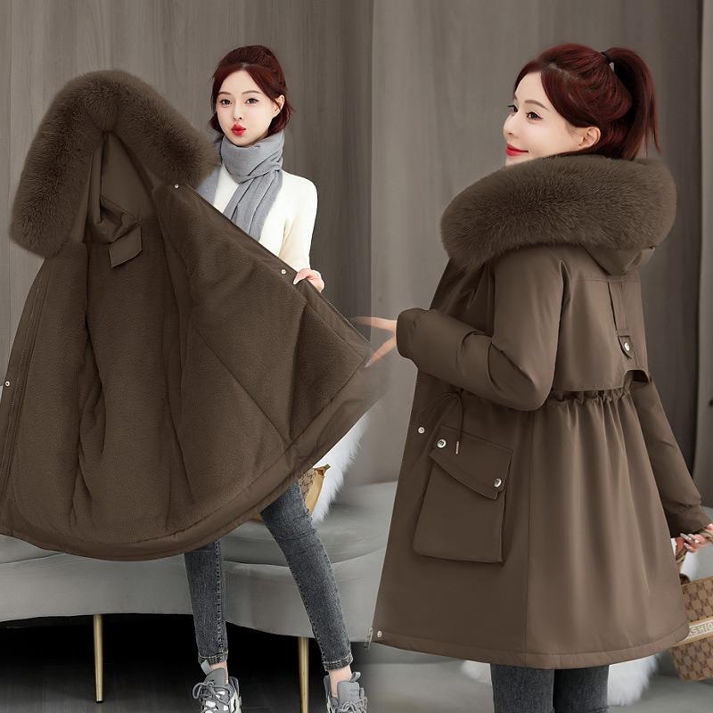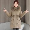 Winter Girl Medium and Long Pie Overcomes the New Big Fur Collar Padded Jacket, Hooded Warm Padded Jacket Thick