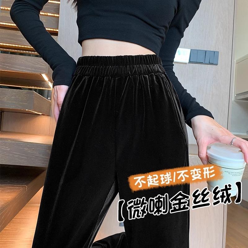 Golden Velvet Wide-leg Pants Women's Spring and Autumn Models New Thin and Drape Flared Pants Small Micro-pull Velvet Pants